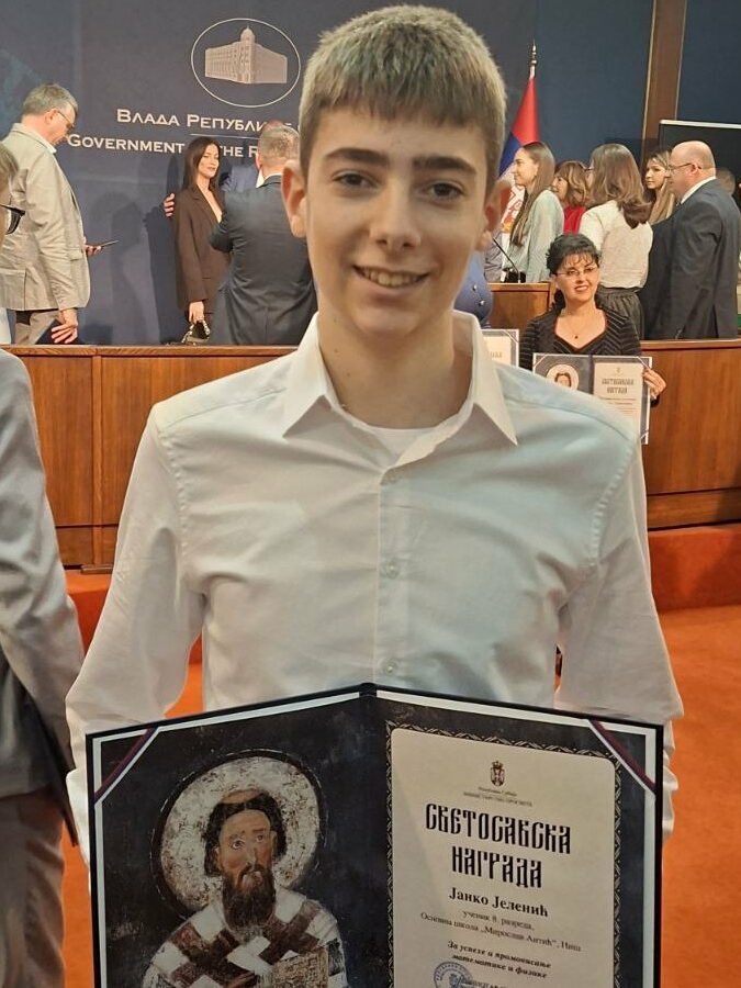Репортажа Јужних вести о добитнику Светосавске награде Јанку Јеленићу 01.02.2026. Нема коментара Репортажу прочитајте на сајту Јужних вести. Osmak koji matematiku vidi kao zabavu i igru – Janko iz Niša posle „žetve“ medalja dobio Svetosavsku nagradu